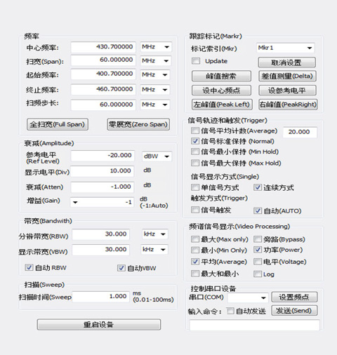 提供参考电平,显示电平,衰减系数,接收发送增益设置
